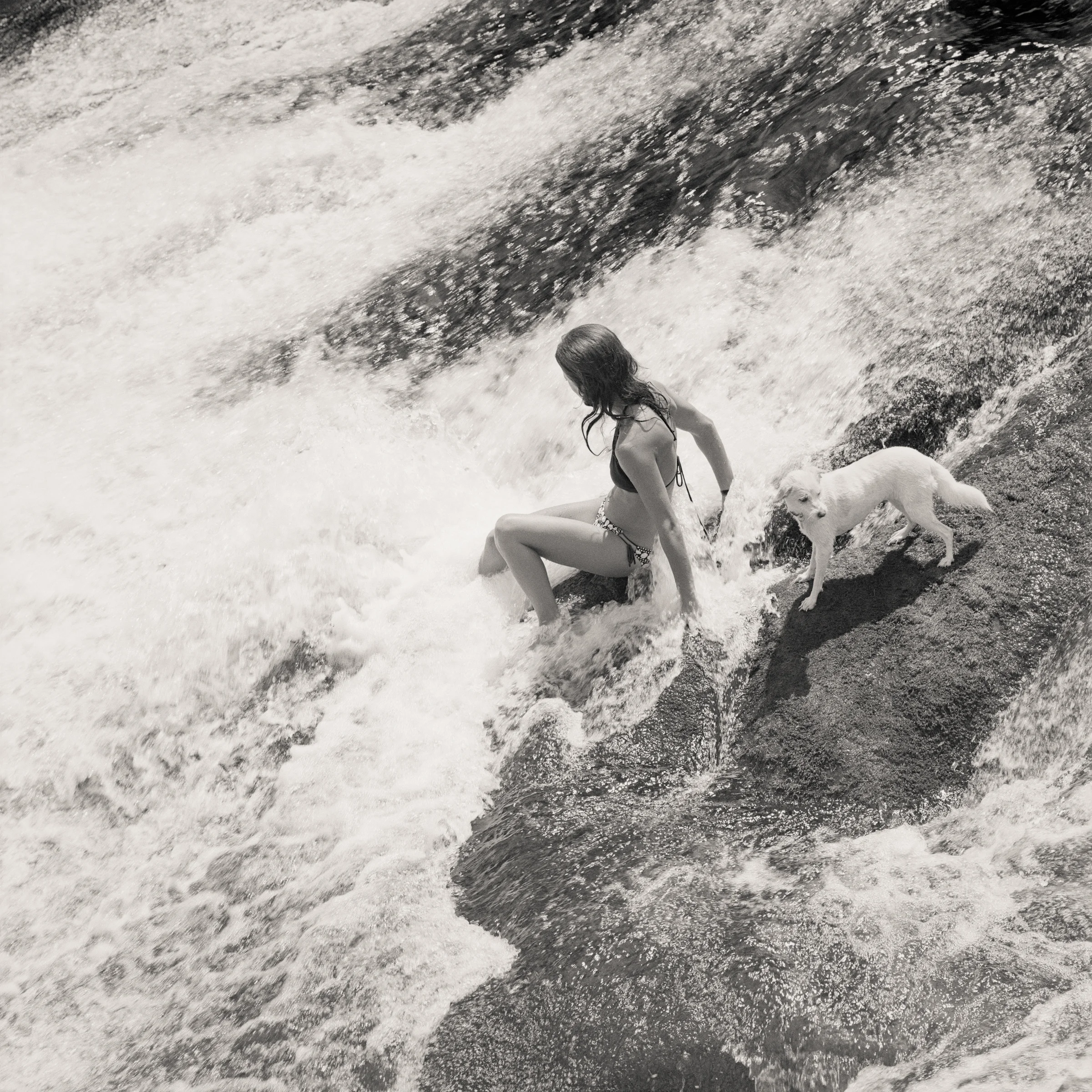 Having spent 30 years away from my native state, I returned to North Carolina in 2012 with an idea to rediscover this beloved place with fresh eyes. I found myself drawn to the old landmarks that have remained the bookmarks of my memory and discovered that a common thread among them was water. My youthful fantasies were of Huck Finn floating down the Mississippi and my realities were tubing down mountain streams in water so cold it turned your lips blue. I did build a raft once…it sunk. Water flows down out of the Blue Ridge mountains and finds it way to the Atlantic ocean. It meanders its way across my southern landscape. Undeniably, water stands at the center of myriad political and environmental debates, however my interest in these images is to examine the social significance of water in our lives. These photographs capture the variety of human interaction found around beaches, lakes and quarries, along rivers, waterfalls and swimming holes.