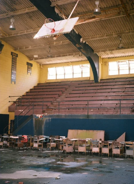 This has inspired me to post a few images of my modest efforts along the same lines. These are of the abandoned Holy Cross Catholic School in New Orleans lower 9th ward. Some 4 years later, the school remained as it was right after Katrina. Today most of the complex, with the exception of the old chapel, has been demolished to make way for a development that may never happen. The Holy Cross neighborhood is a fascinating model for post-Katrina recovery. There are new sustainable green buildings in a small pocket, another non-profit has slowly been buying and restoring some historic buildings and offering affordable ways to repopulate the area, and yet large swaths of the area remain in quiet ruins.